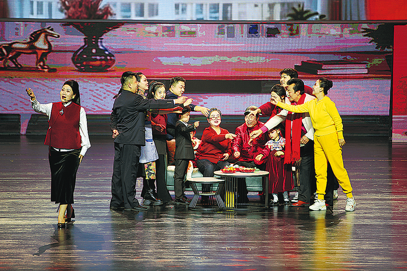 歌舞类节目兼具豪迈气魄与创新活力:《陕北多壮丽》以雄浑旋律、壮阔布景,勾勒黄土高原的苍茫辽阔,唱出陕北儿女对故土的眷恋;《信天游颂》巧妙融合传统信天游高亢曲调与现代音乐元素,让古老民歌焕发新生;《陕北·新年好H ap⁃py》打破传统,将流行音乐与说唱元素融入陕北民歌,年轻演员用青春嗓音与动感舞步,传递新春喜悦,展现榆延青年的朝气与担当。
