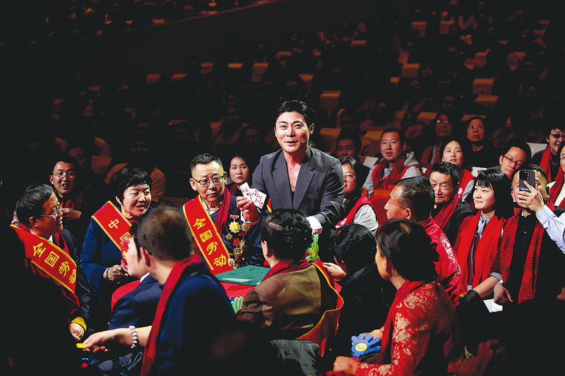 参与互动的环卫工代表王美丽激动地说:“太神奇了!真不知道他怎么让扑克牌数字随心所欲地变化,还能和春节祝福联系到一起。”