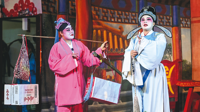2月22日,在广西钦州市刘永福广场,民间艺人在表演采茶戏。