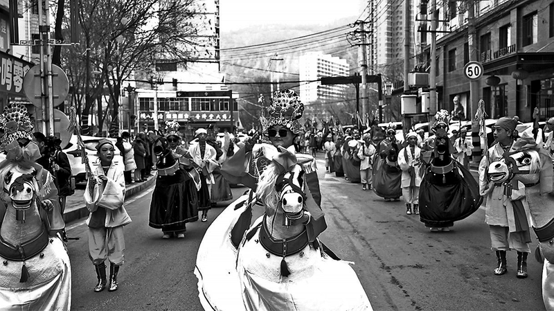 紧接着,竹马队登场,瞬间将春节的“闹”推向高潮。赶马者策马扬鞭,竹马队伍奔腾如潮,时而两骑交锋、竞相斗马,时而群马齐聚、欢呼奔腾,生动再现了传说中的御马场景。
