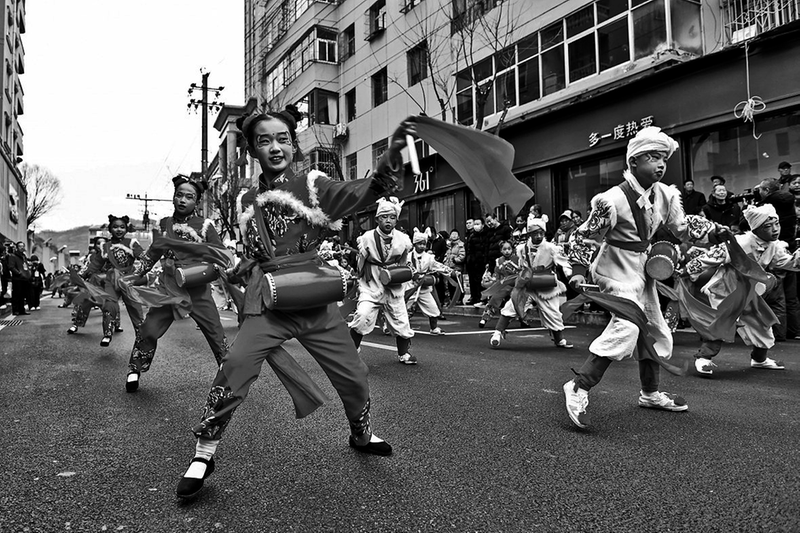 行至凤凰广场,各方阵进行集中展演。激昂的唢呐声吹响了《西北随想》,陕北说书《延安新貌》用地道方言诉说着这座城市日新月异的变化。少儿街舞方阵带来的《新年快乐》,用酷炫舞姿展现了新时代青少年的活力。木兰鼓表演中,“花木兰”以长枪为道具,表演马步、转身等武术和戏曲动作,人群中连连响起“好!好!”的喝彩声。