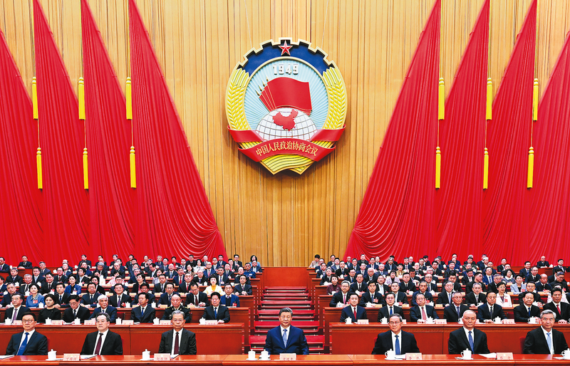 三月的北京,春启华章。人民大会堂大礼堂灯光璀璨,气氛隆重热烈。中国人民政治协商会议会徽悬挂在主席台正中,十面鲜艳的红旗分列两侧。