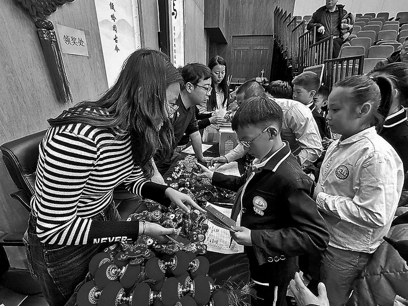 记者在现场注意到,每项活动都设置了互动环节。在“猜字谜”环节中,主持人与选手你出谜语我猜谜,氛围热烈;“识字注音挑战赛”环节则选取了“粗犷(guǎng)”“准噶(gá)尔”“妄自菲(fěi)薄”等易错字,小选手们眉头紧锁、仔细拼读,在比赛中认真作答。