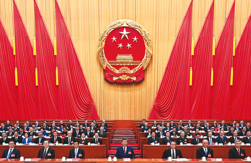 ●3月12日下午,第十四届全国人民代表大会第四次会议在北京人民大会堂闭幕。党和国家领导人习近平、李强、王沪宁、蔡奇、丁薛祥、李希、韩正等在主席台就座。 新华社记者 谢环驰 摄
