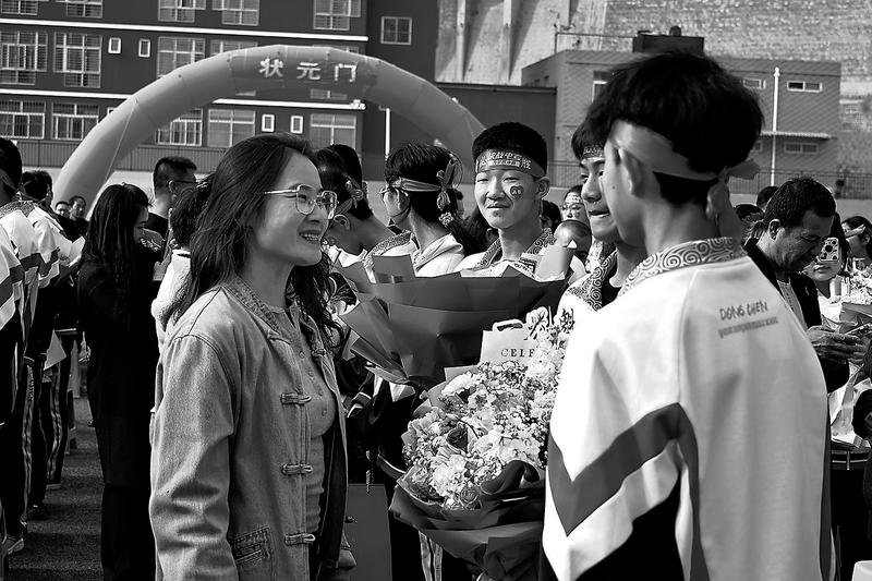 誓言渐息,温情音乐缓缓响起。家长们手捧鲜花走向孩子,看着他们为梦想努力的模样,给予一个拥抱。“孩子,你辛苦了。”“别怕,爸爸妈妈永远在你身后。”轻声叮咛、温暖怀抱,让许多孩子红了眼眶。这一刻,所有压力与焦虑都被这份爱融化。