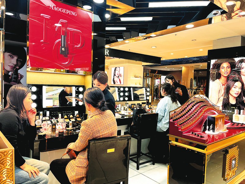 ● 延安百货大楼商场内市民试妆体验 记者 贺秋平 摄 春和景明,惠风送暖。漫步延安,城区百货大楼、万达广场等商圈人流如织,服饰、化妆品专柜前人头攒动;碾庄汽车城内,各品牌展厅暖意融融,市民三五成群围着新车试驾体验、洽谈订购,欢声笑语间尽显消费热情。