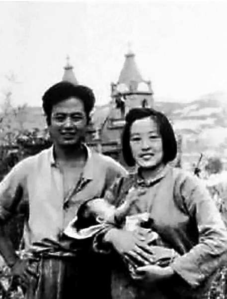 ● 牧虹和妻子仲伟与女儿赵珊珊在延安鲁艺合影