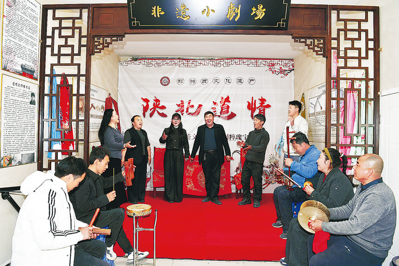 正月刚过,子长市瓦窑堡镇石家川村的庙会来了赶热闹的村民。村子中央搭起戏台,二胡一响、锣鼓一敲,台下呼啦围满了人。