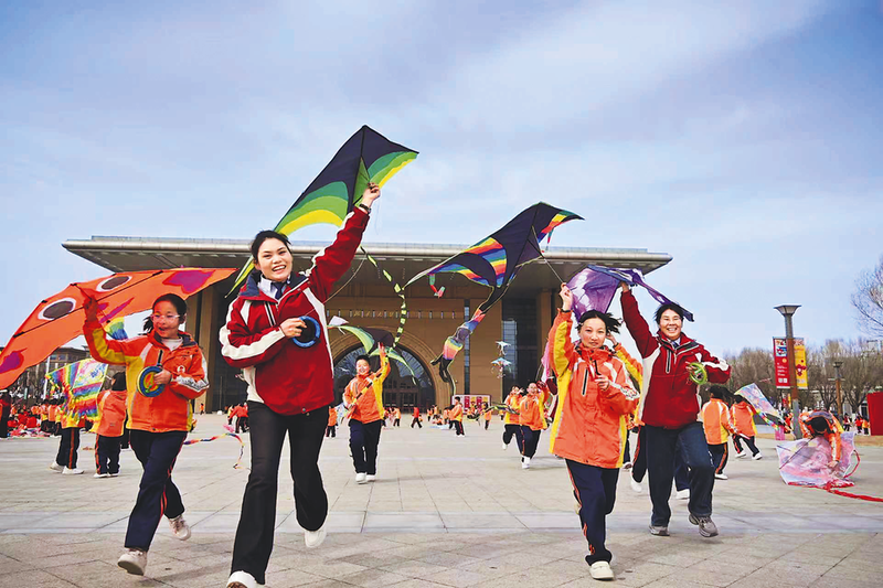 用画笔定格春天的色彩 春风和煦,纸鸢翩跹。近日,延安培植小学师生走出校园,走进延安新区大剧院广场,开展了一场以“筝舞蓝天,放飞梦想”为主题的放风筝实践活动。