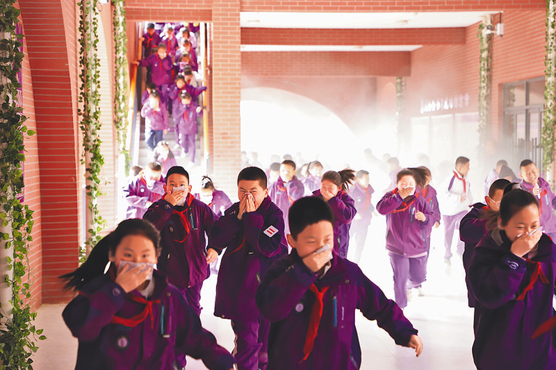3月25日,延安市新区第四中学小学部开展消防安全疏散演练活动。