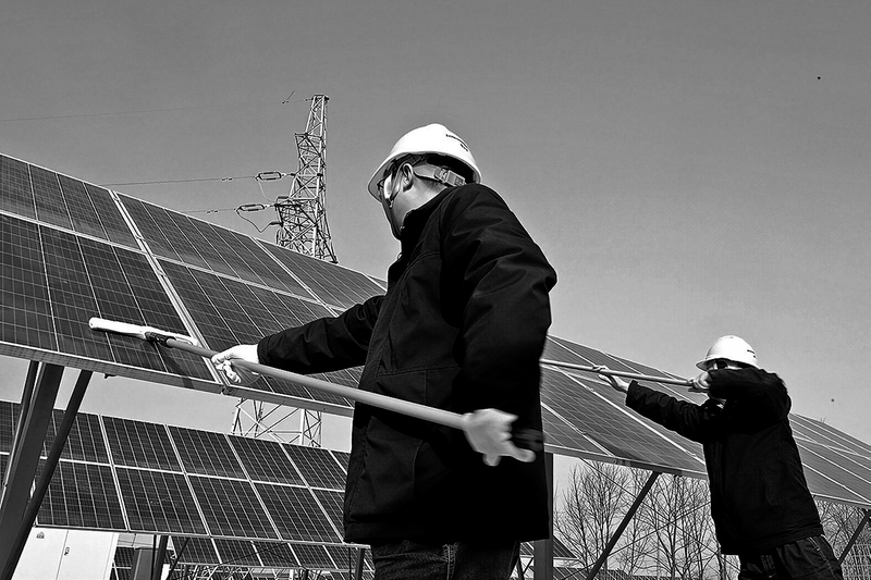 ● 清洁太阳能电池板 通讯员 张瑜 摄 通讯员 张瑜