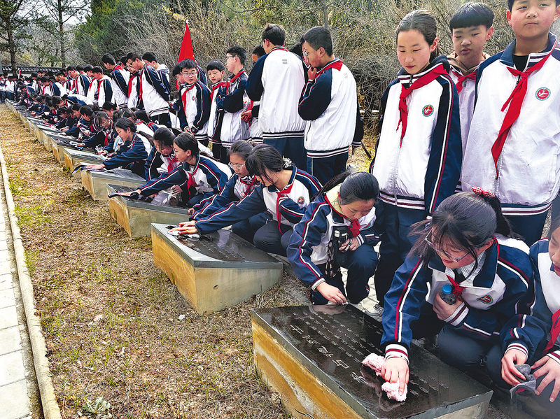 活动中,同学们手持毛巾仔细擦拭烈士墓碑上的尘埃,以朴素真挚的方式向革命先烈致以崇高敬意。在庄严肃穆的氛围中,大家重温革命历史、学习英烈事迹,在沉浸式感悟中厚植爱国情怀,进一步增强了民族自豪感与历史使命感。