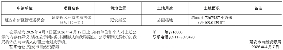 延安市自然资源局国有建设用地使用权划拨批前公示