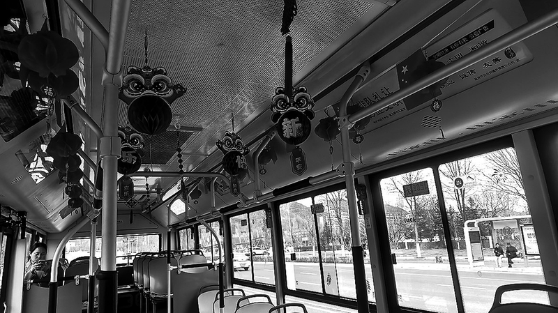 而会写诗的“网红”公交车司机冯海明,则选择了红色爱国主题来装扮他的K208路。红色小灯笼和小国旗错落有致地挂在栏杆两侧,显得格外鲜艳夺目,营造出喜庆热闹又温馨的氛围。冯海明深情地说:“有国才有家,我想通过车厢的装扮,传递爱国爱家的情感,祝福大家好事多多,勇敢奋斗。”除了车厢的装扮,冯海明还在司机座位后的挡板上挂了小筐,里面装着 瓶装水、纸等物品,还挂着药包和装满零食的袋子。他说:“人出门在外,都会遇到各种特殊状况,我把能预想到的都考虑到了,这些东西是给乘客备的,万一出现意外情况,就能用上。”他的细心与周到,让每一位乘客都感受到了家的温暖。