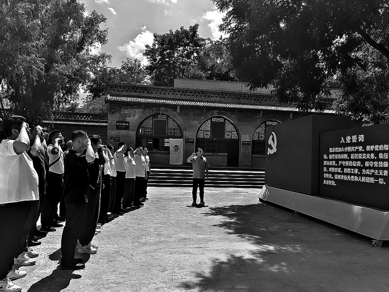 ● 重温入党誓词 宝塔区经发局 提供 清晨,薄雾未散,宝塔区麻洞川惠民居住小区基础设施提升改造项目现场已是一派繁忙景象:挖掘机高效破除老旧路面,工人们有序搬运物料、铺设配套管网,各项工序有条不紊、高速推进。区经发系统的干部职工正穿梭在各个施工区域,以项目前沿为“办公室”,用高效服务为项目建设扫清障碍、打通堵点。