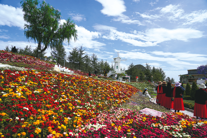 时下,山东省淄博市博山区红叶柿岩旅游区内繁花绽放。景区通过场景创新、业态融合打造沉浸式赏花场景,有效拉长游览与消费链条,带动周边村民就业增收,将生态美景转化为富民产业。