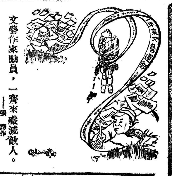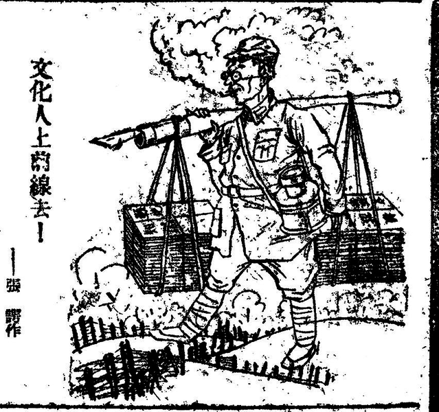 ● 1939年12月26日《新华日报》报眼——《文化人上前线去》 张谔 作