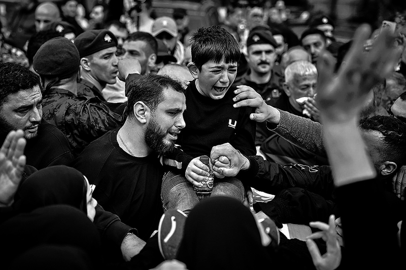 4月11日,在黎巴嫩西顿市,人们参加遭以军空袭丧生的安全人员的葬礼。