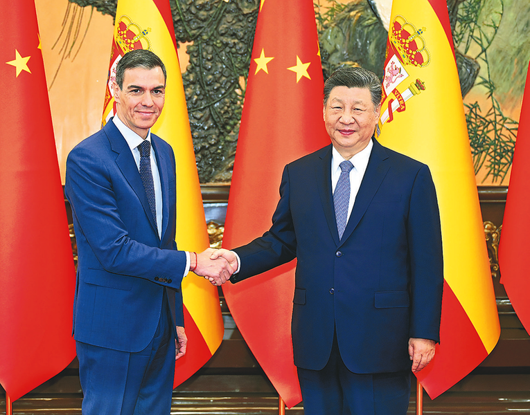 习近平强调,当今世界乱象丛生,面临公理和强权的较量。如何对待国际法和国际秩序,反映的是一国的世界观、秩序观、价值观和责任观。中国和西班牙都是有原则、讲道义的国家,应该加强沟通、巩固互信、紧密合作,反对世界倒退回丛林法则,共同捍卫真正的多边主义,维护以联合国为核心的国际体系和以国际法为基础的国际秩序,推动实现平等有序的世界多极化、普惠包容的经济全球化,推动构建人类命运共同体。