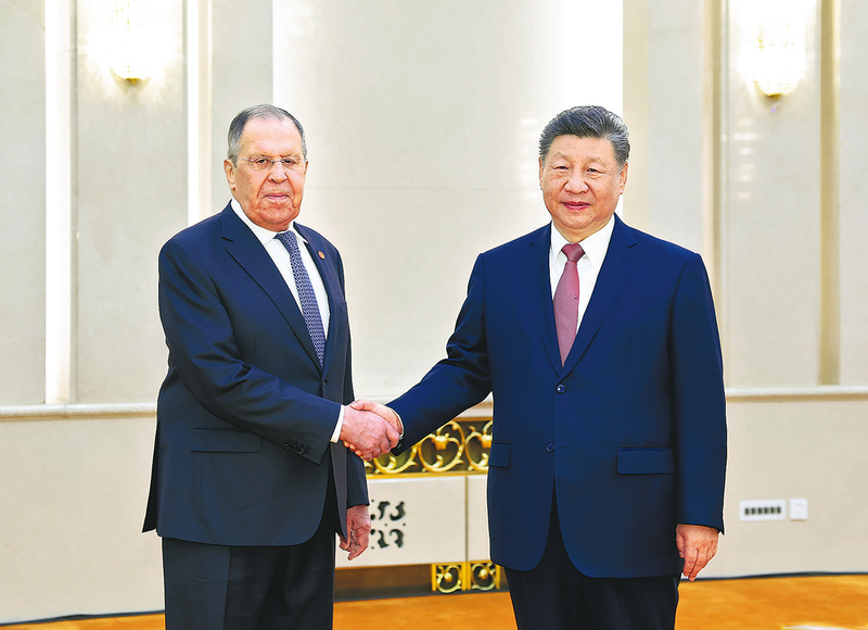 ● 4月15日上午,国家主席习近平在北京人民大会堂会见俄罗斯外长拉夫罗夫。 新华社记者 黄敬文 摄