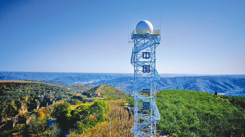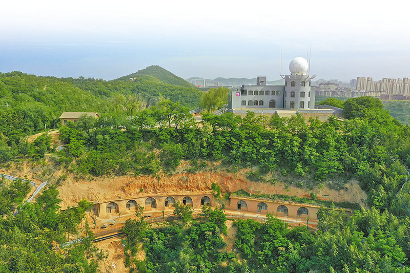 从半山腰的窑洞旧址拾级而上,清风拂面,视野豁然开朗。山顶现代化展厅古朴典雅,白色的天气雷达站格外醒目。走进展厅,历史与当下在此相遇,一场可感、可触、可记的沉浸式红色教育和气象科普就此展开。