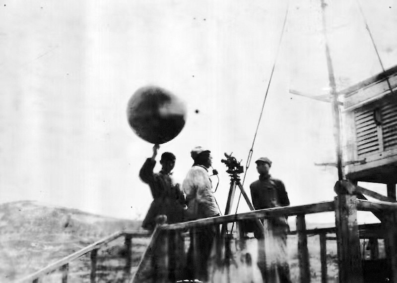 1946年,延安气象台工作人员施放控空气球