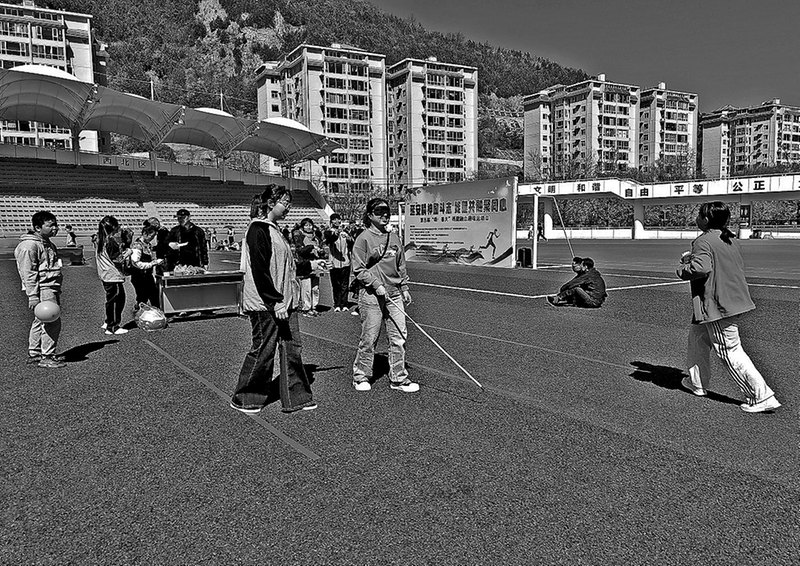 ● 参与者体验蒙眼敲鼓项目 记者 张译心 摄 本报讯(记者 张译心)春光正好,惠风和畅,宝塔山下欢声渐起。4月18日,第五届“嗨!春天”残健融合趣味运动会在延安市体育场举行。本次活动由中共陕西白手杖视障服务中心党支部、中国狮子联会陕西厚朴服务队、延安市盲人协会联合主办,以“延安精神励斗志 残健共融聚同心”为主题,吸引了300余名参与者携手互动,在春日氛围中展现积极向上的精神风貌,传递残健共融的和谐理念。活动伊始,一段气势昂扬的锣鼓表演点燃全场。随后,齐心运球、彩虹伞、无敌风火轮等10个项目同步开展。志愿者们守护在赛场各处,为参与者耐心引导、加油打气。