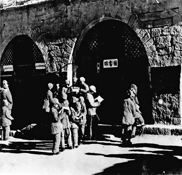 1937年5月,党中央在延安创办的第一所红色公共图书馆——延安中山图书馆(延安市图书馆前身)正式创立,毛泽东题写馆名,林伯渠为首任馆长。面对边区文盲率居高不下的现状,党中央大力推进扫盲识字运动,推行“ 识字见报”模式,以报刊为教材普及文化;同期在清凉山诞生的新华书店与图书馆协同发力,共同构建起延安时期的红色文化传播体系。