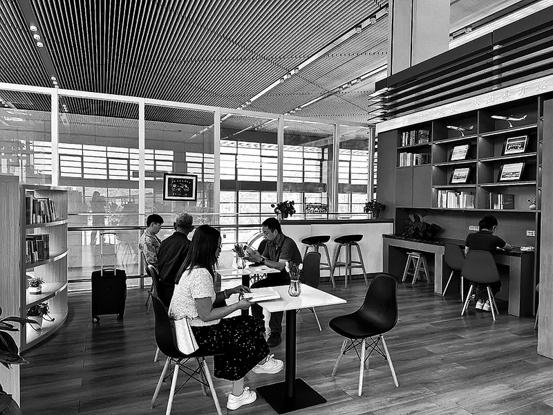 ● 旅客在南泥湾机场“延州阅读”城市书房阅读 文化视点